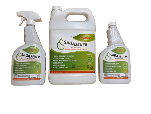 San-Assure Manufacturing, LLC was founded during the COVID-19 pandemic by a mother seeking better, safer, and more effective cleaning solutions. Frustrated with traditional disinfectants that left harmful residues, we set out to create a piece of professional cleaning equipment, and eco-friendly disinfectant-safe cleaning solutions that would safely sanitize homes and businesses. Our journey led us to a partnership with industry experts, and we are proud to bring San-Assure to market with the mission of improving quick sanitation without harm to people, or the environment.